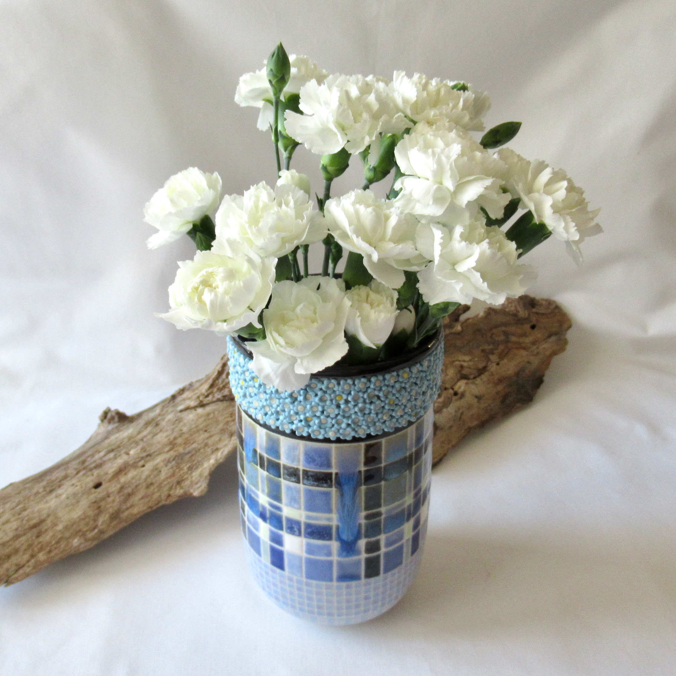 A Blue Turquoise Dahlia Bud Vase with Copper Float Rim