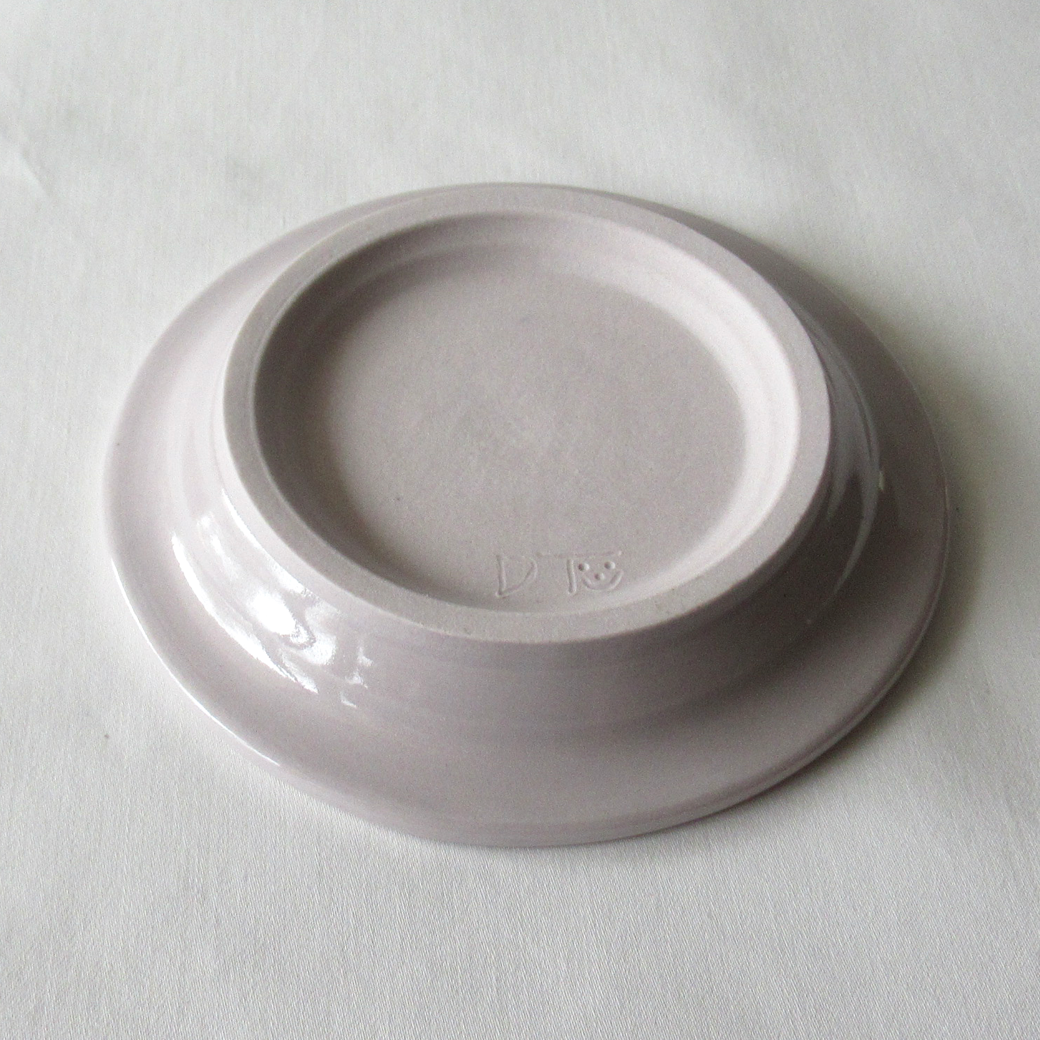 Band closest to the rim is pale lavender with clear glaze.